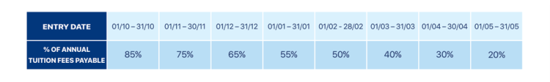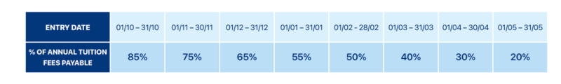 Full payment of the Annual Tuition Fee receives a discount according to [A] Early Payment Discount.