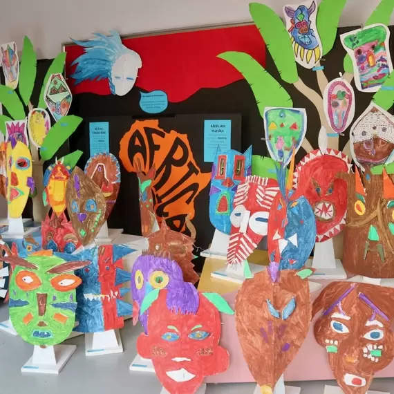 As part of their lessons examining Kenyan culture, Mr. Robbie and the Grade 4 and 5 students created a jungle-themed exhibition in the entrance of the primary block. The exhibition features creative and colourful African-inspired tribal masks and