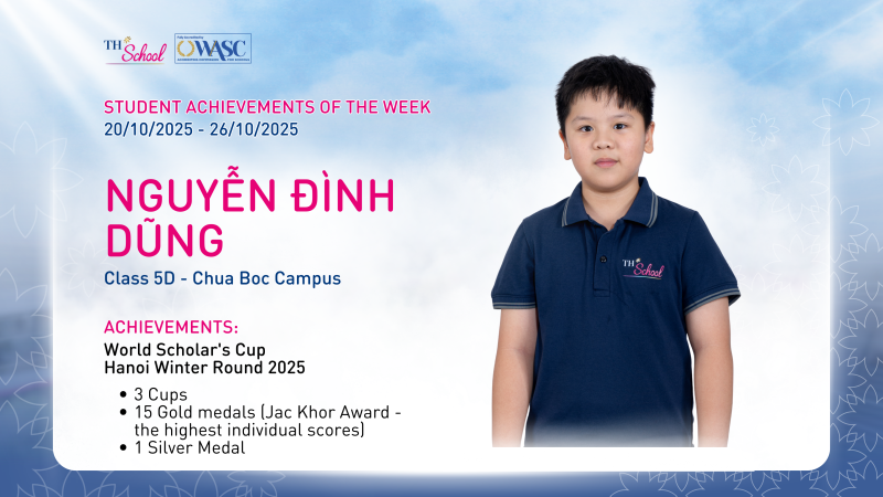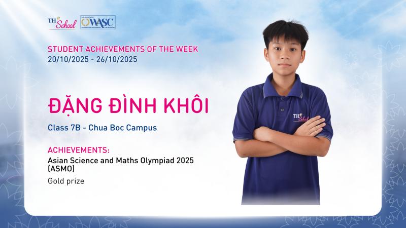 TH School’s Đặng Đình Khôi (7B) made the community proud by winning the Gold Medal at the Asian Science and Maths Olympiad (ASMO) 2025, a prestigious competition recognizing outstanding students across Asia in Mathematics and Science.