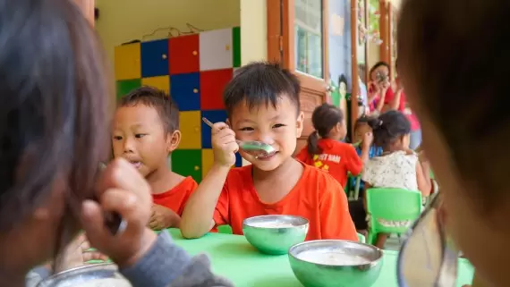 Những bữa ăn dinh dưỡng đã mang đến những tác động tích cực đối với các em học sinh ở điểm trường Sáng Xoáy, góp phần cải thiện thể lực và trí lực, đồng thời khích lệ các em tới trường m