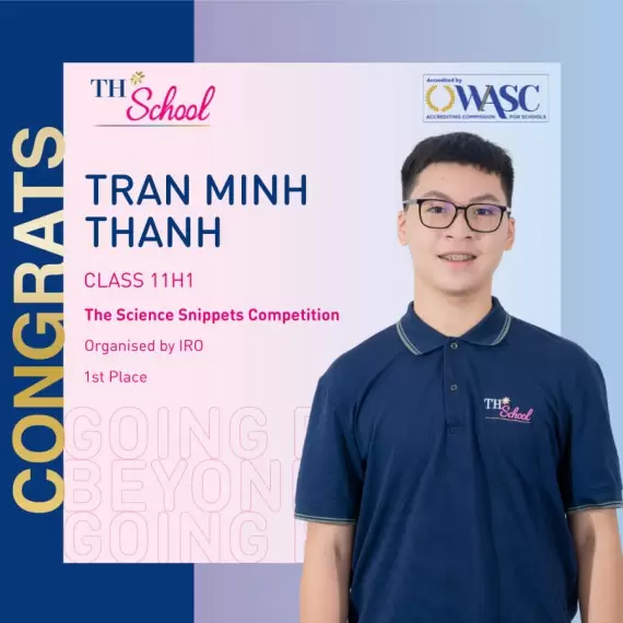 Xin chúc mừng Trần Minh Thành, học sinh lớp 11 - TH School Hòa Lạc, đã xuất sắc giành GIẢI NHẤT tại cuộc thi Science Snippets
