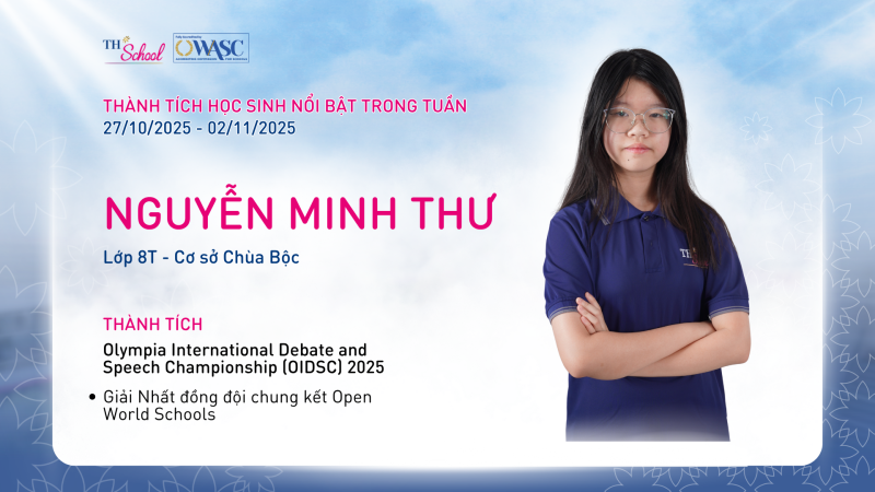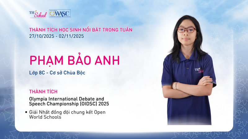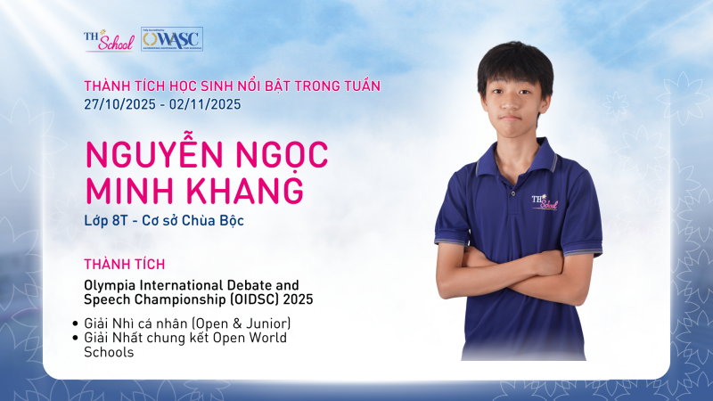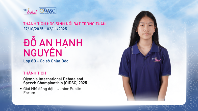 Những thành tích đáng tự hào này không chỉ phản ánh năng lực tư duy phản biện, khả năng giao tiếp tiếng Anh và tư duy khoa học vượt trội của học sinh TH School, mà còn minh chứng cho tinh thần học hỏi bền bỉ, dám thử thách bản thân và không ngừng vươn lên – những giá trị cốt lõi mà nhà trường luôn hướng tới.
