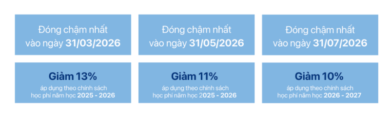 Đóng học phí nguyên năm sớm cho năm học 2025/2026 sẽ được ưu đãi theo các mức sau:
